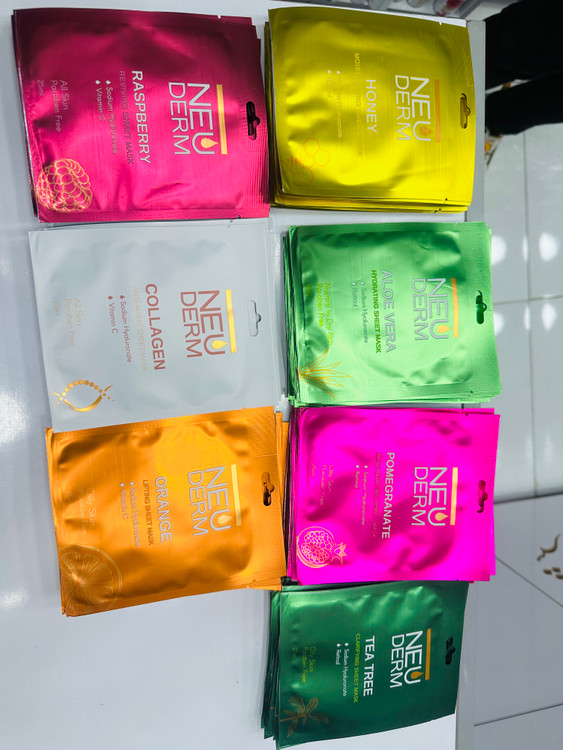 جنس نقاب ماسک ورقهای نئودرم از پنبه بوده و مصرف آن، هیچگونه حساسیتی ایجاد نکرده و میتوان از این ماسک به صورت روزانه هم استفاده کرد. فرمولاسیون مغذی ماسکصورت حاوی عصاره آلوئه ورا نئودرم شامل هیالورونات سدیم و رتینول است.