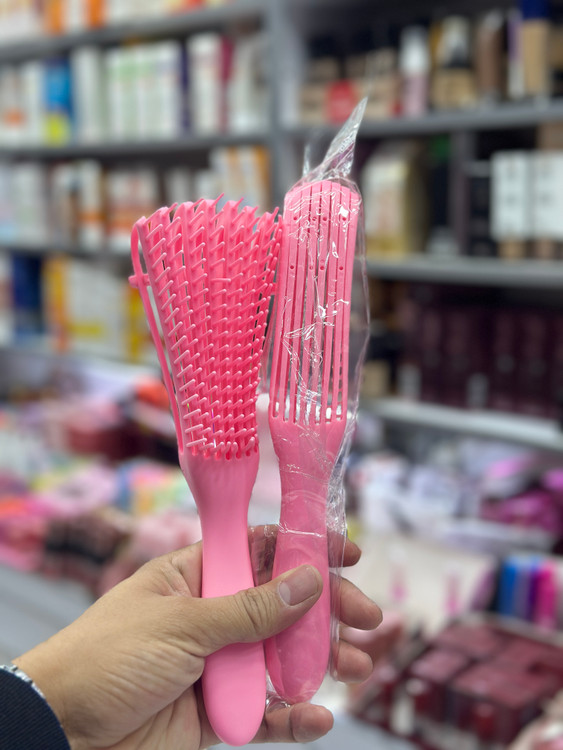 این برس مناسب باز کردن گره ی موهای فر ریز فردرشت موج دار و انواع مو فر است - 👌جنس دندانه پلاستیک منعطف - 👌خیلی محکم وخوش دست است - 👌هشت ردیف باریک دارد که با یک نوار به هم متصل میشوند و میتوانید از این نوار استفاده کنید یا میتونید نوار رو بردارید 💯- این برس یکی از محبوب ترین برس ها بین موفرفری هاست چون مو ها را نمیکشد و خیلی راحت ونوازشی گره های سخت مو ها را باز میکند - این برس را میتوانید تنظیم کنید اگر موهای پر و کوتاهی دارید نوار پشتی برس را بالا تنظیم کنید و اگر موهای بلند و ضخیمی دارید نوار را پایین تنظیم کنید - نواری که روی شانه قفل شده از قسمت پشت شانه دو محل دارد که برای تنظیم است